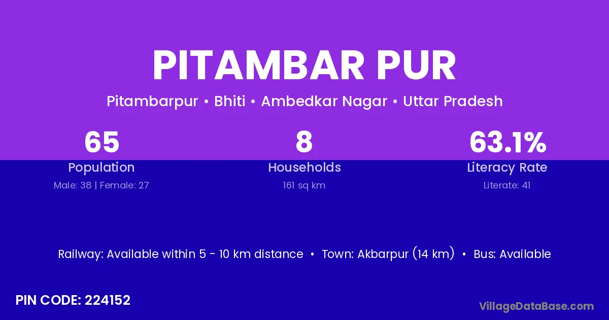 Akbarpur (14 km) is the nearest town to Pitambar Pur village for major economic activities and is located approximately 14 km away.
