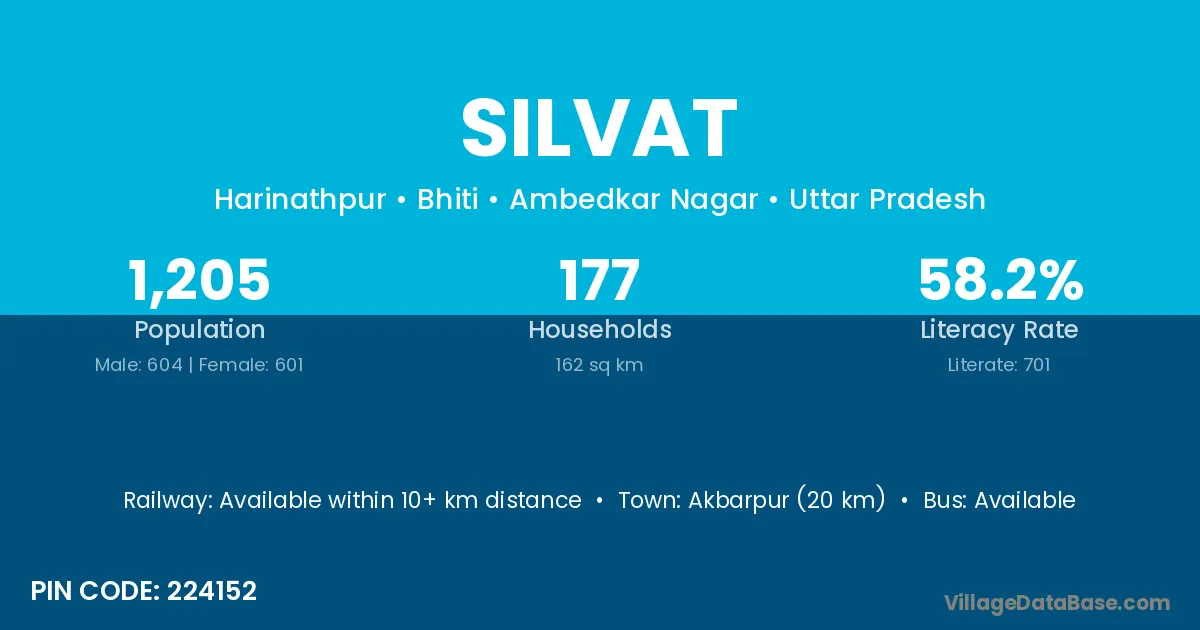 Akbarpur (20 km) is the nearest town to Silvat village for major economic activities and is located approximately 20 km away.