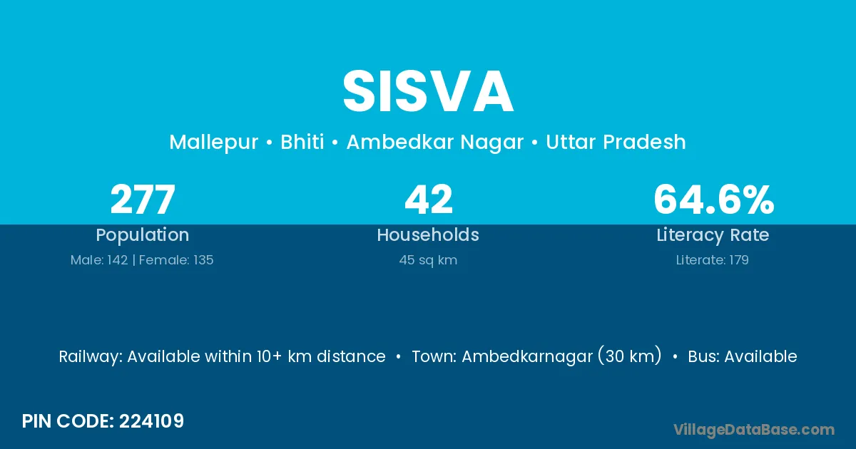 Ambedkarnagar (30 km) is the nearest town to Sisva village for major economic activities and is located approximately 30 km away.