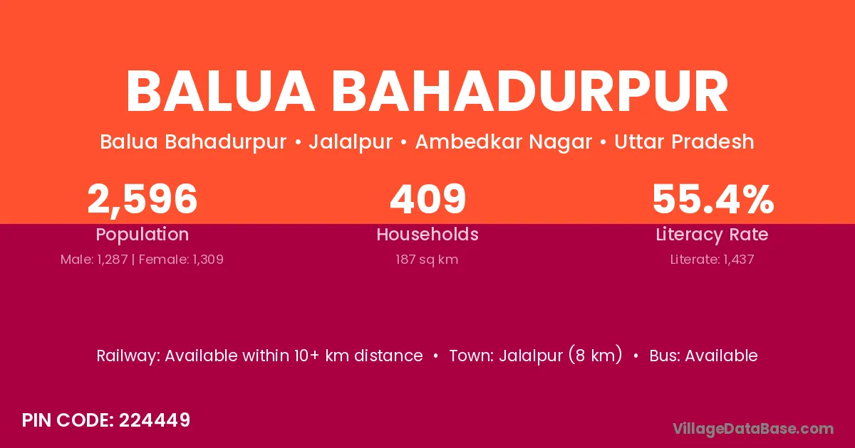 Jalalpur (8 km) is the nearest town to Balua Bahadurpur village for major economic activities and is located approximately 8 km away.