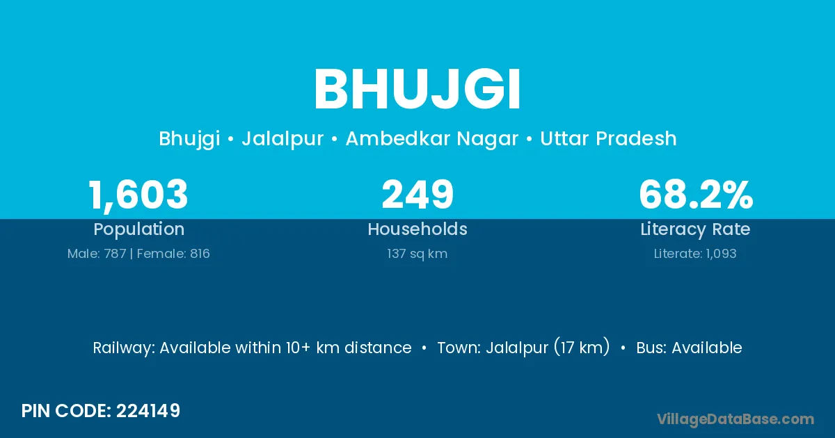 Bhujgi village has a total population of 1,603 people, of which 787 are males and 816 are females.