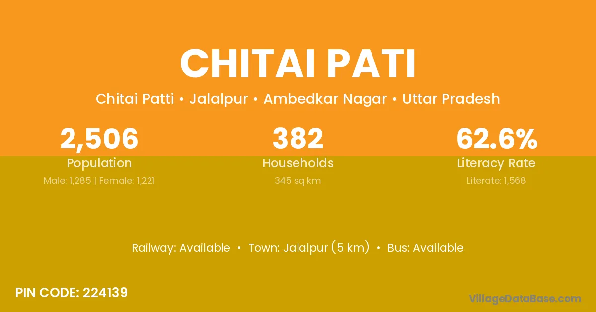 Jalalpur (5 km) is the nearest town to Chitai Pati village for major economic activities and is located approximately 5 km away.