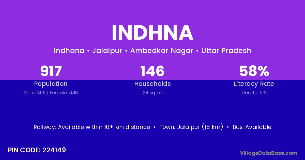 Jalalpur (18 km) is the nearest town to Indhna village for major economic activities and is located approximately 18 km away.