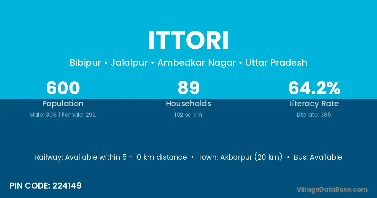 Akbarpur (20 km) is the nearest town to Ittori village for major economic activities and is located approximately 20 km away.
