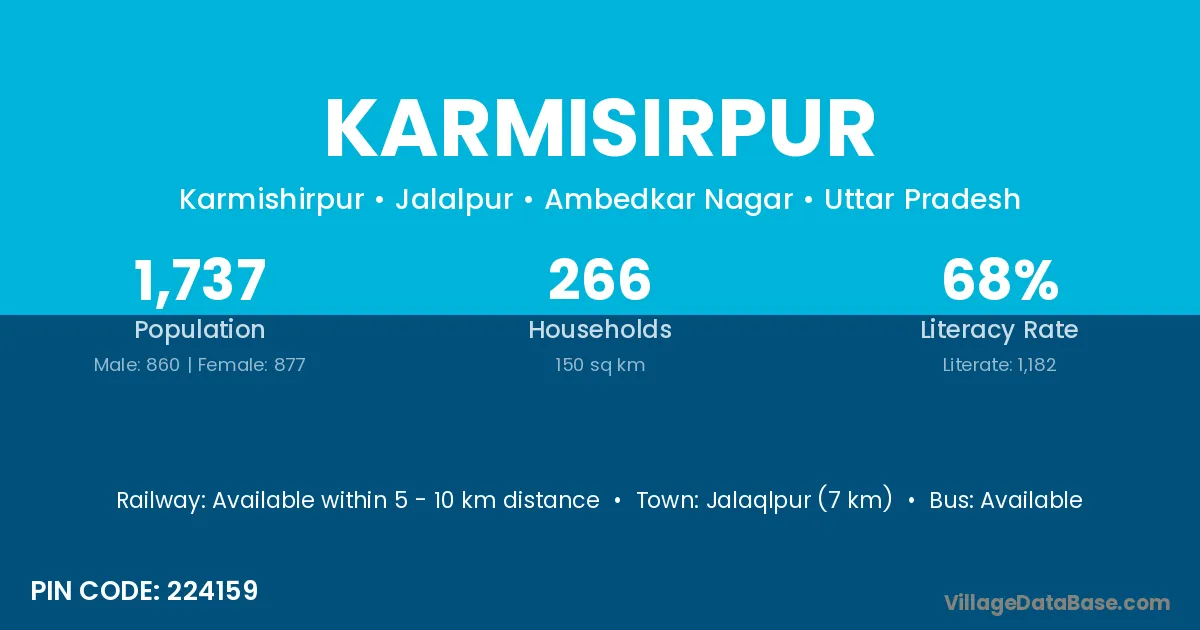 Jalaqlpur (7 km) is the nearest town to Karmisirpur village for major economic activities and is located approximately 7 km away.