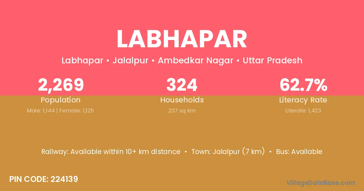 Jalalpur (7 km) is the nearest town to Labhapar village for major economic activities and is located approximately 7 km away.