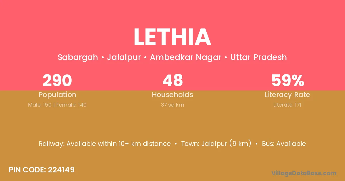 Jalalpur (9 km) is the nearest town to Lethia village for major economic activities and is located approximately 9 km away.