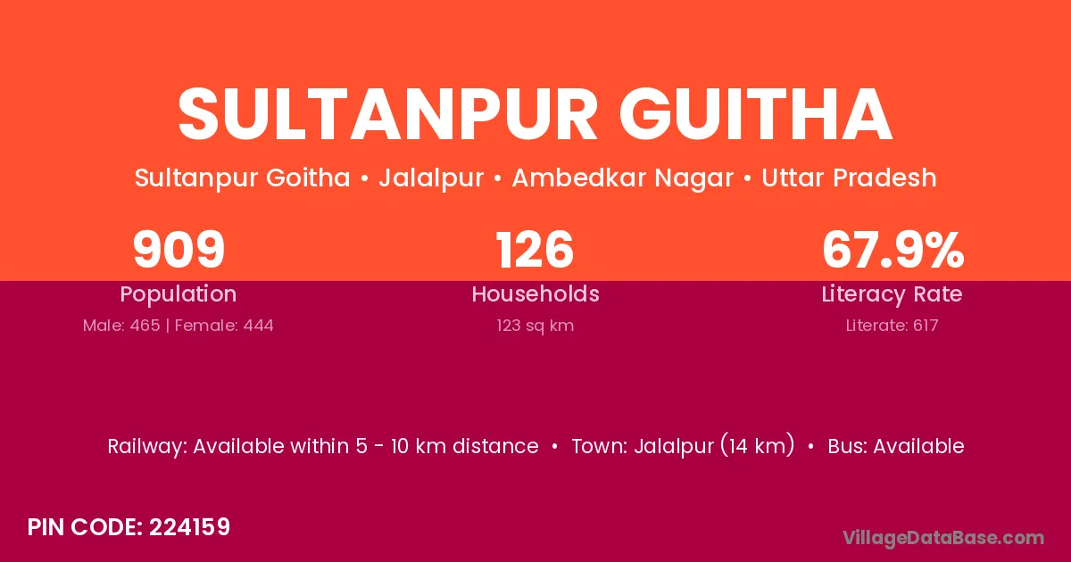 Sultanpur Guitha village has a total population of 909 people, of which 465 are males and 444 are females.