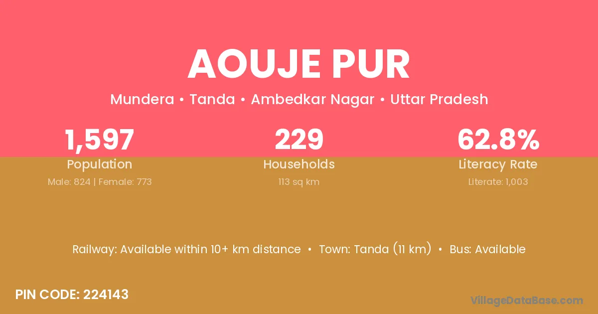 Aouje Pur village has a total population of 1,597 people, of which 824 are males and 773 are females.