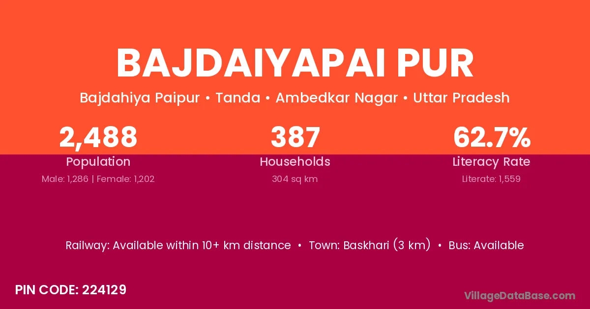 Baskhari (3 km) is the nearest town to Bajdaiyapai Pur village for major economic activities and is located approximately 3 km away.