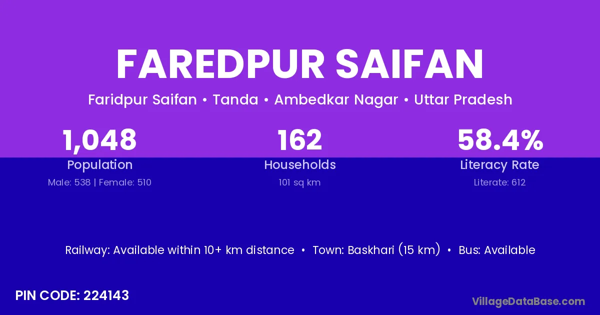 Faredpur Saifan village has a total population of 1,048 people, of which 538 are males and 510 are females.