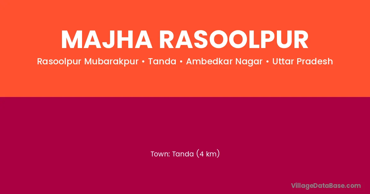 Tanda (4 km) is the nearest town to Majha Rasoolpur village for major economic activities and is located approximately 4 km away.