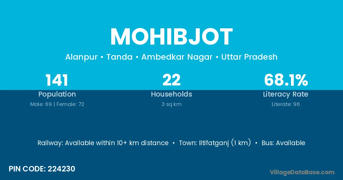 Iltifatganj (1 km) is the nearest town to Mohibjot village for major economic activities and is located approximately 1 km away.