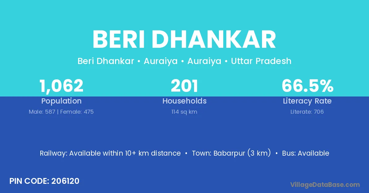 Beri Dhankar village has a total population of 1,062 people, of which 587 are males and 475 are females.
