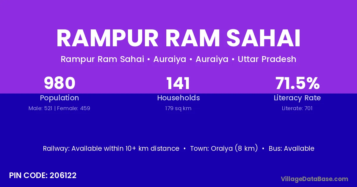 Oraiya (8 km) is the nearest town to Rampur Ram Sahai village for major economic activities and is located approximately 8 km away.