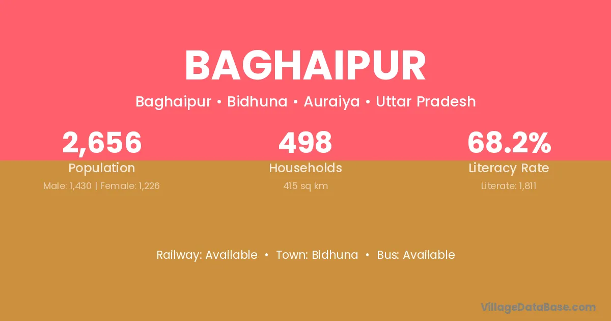 Bidhuna is the nearest town to Baghaipur village for major economic activities