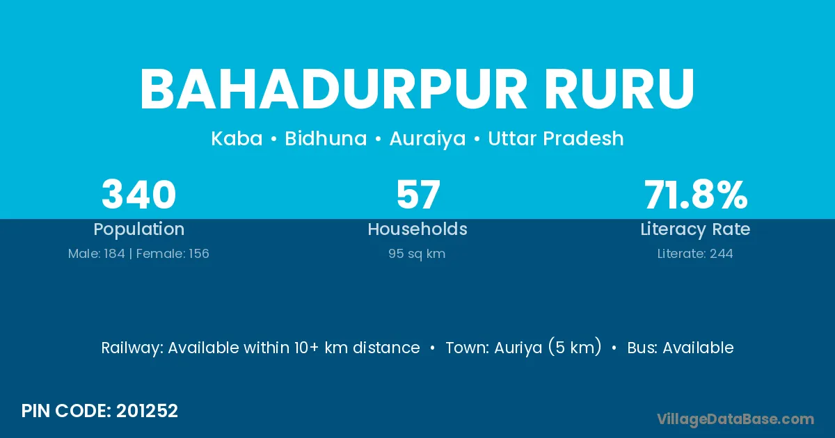 Auriya (5 km) is the nearest town to Bahadurpur Ruru village for major economic activities and is located approximately 5 km away.
