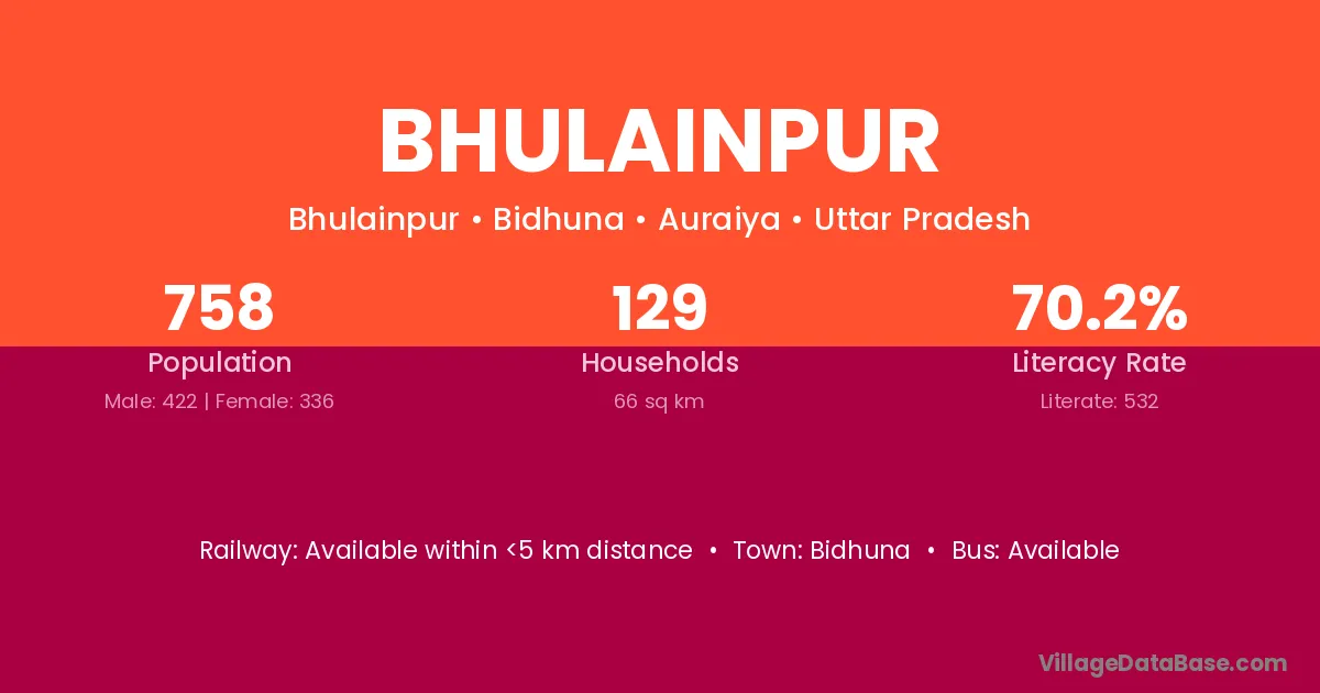 Bhulainpur village has a total population of 758 people, of which 422 are males and 336 are females.