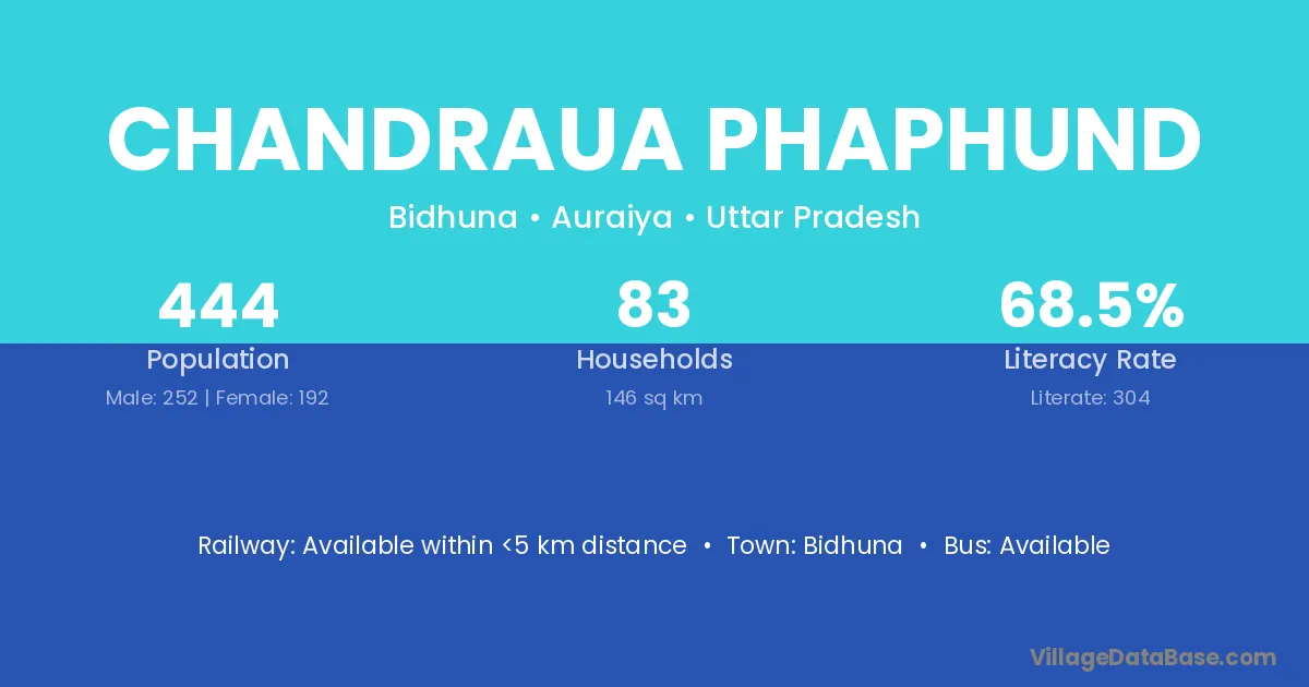Chandraua Phaphund village has a total population of 444 people, of which 252 are males and 192 are females.