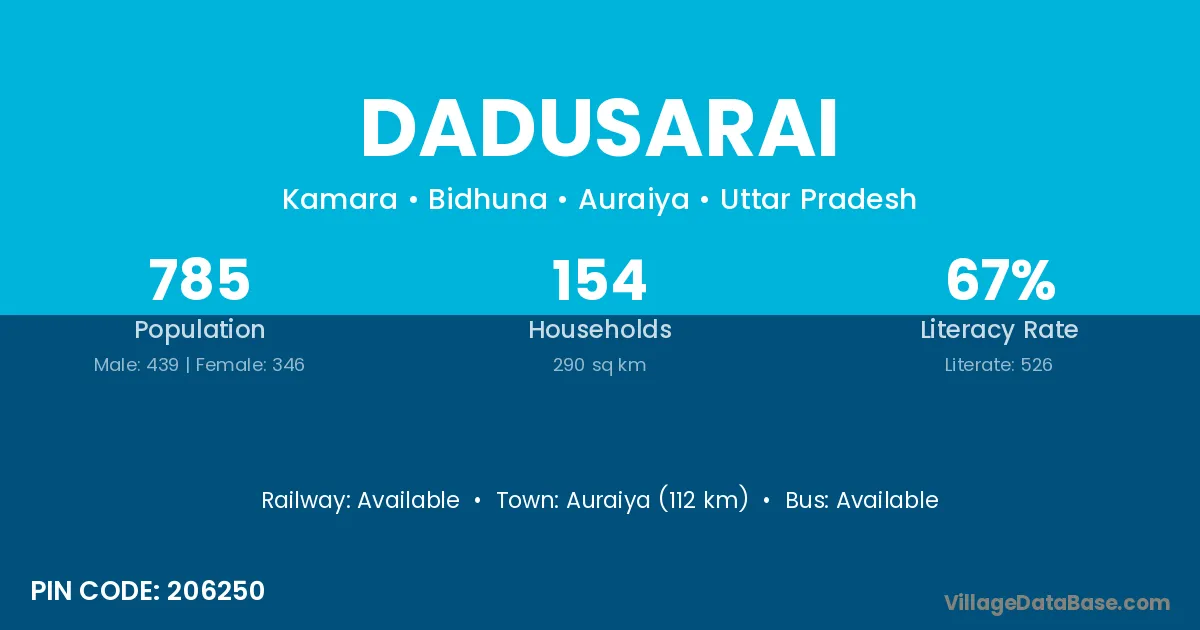 Auraiya (112 km) is the nearest town to Dadusarai village for major economic activities and is located approximately 112 km away.