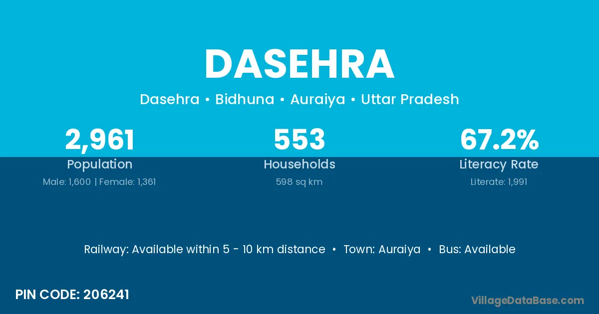 Auraiya is the nearest town to Dasehra village for major economic activities