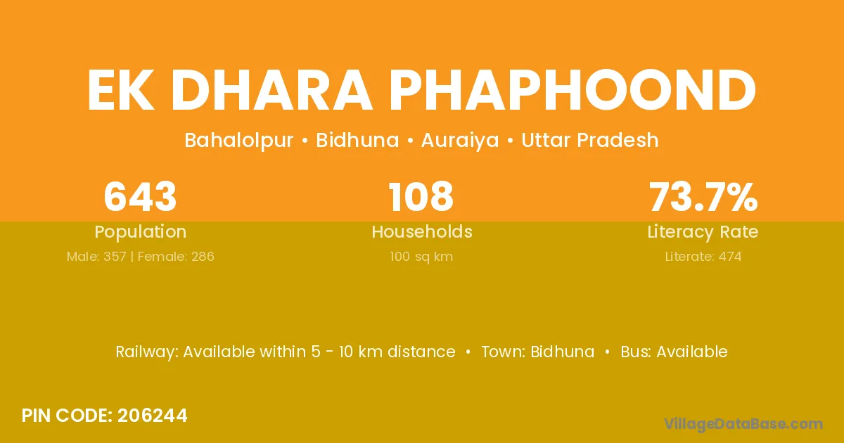 Bidhuna is the nearest town to Ek Dhara Phaphoond village for major economic activities