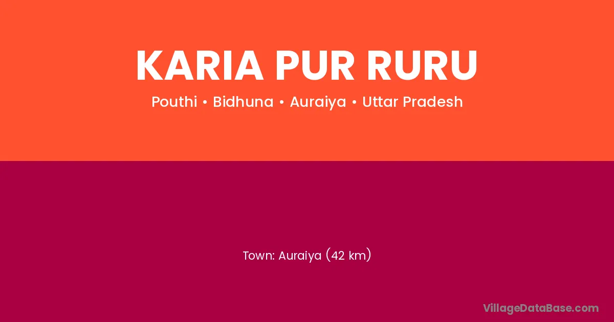Auraiya (42 km) is the nearest town to Karia Pur Ruru village for major economic activities and is located approximately 42 km away.