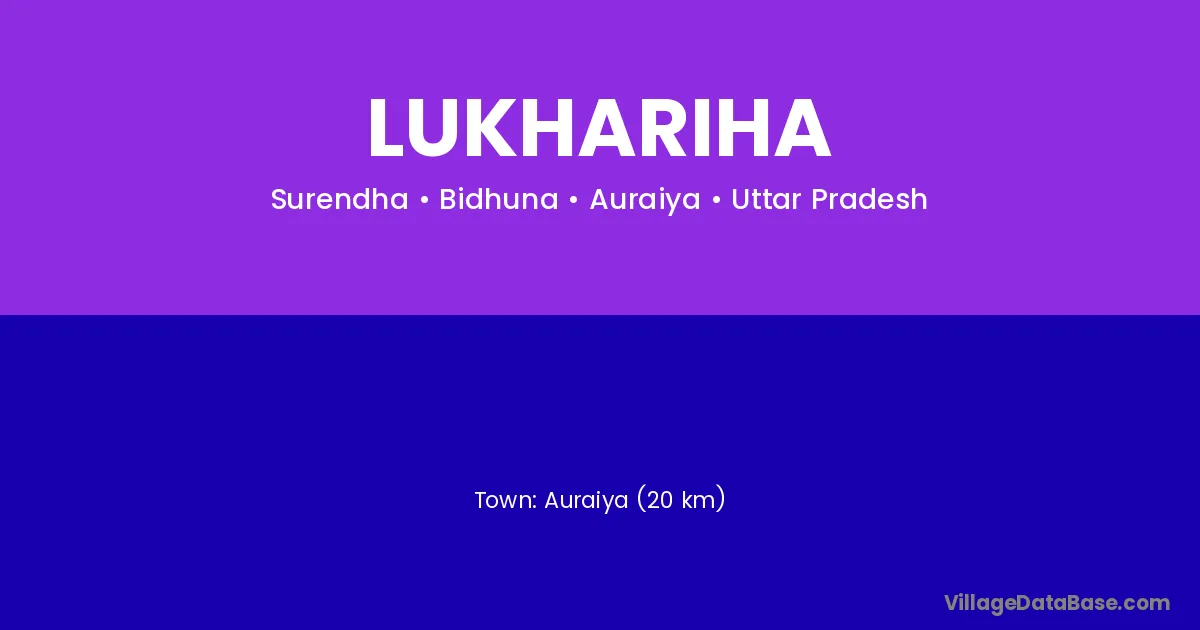 Auraiya (20 km) is the nearest town to Lukhariha village for major economic activities and is located approximately 20 km away.