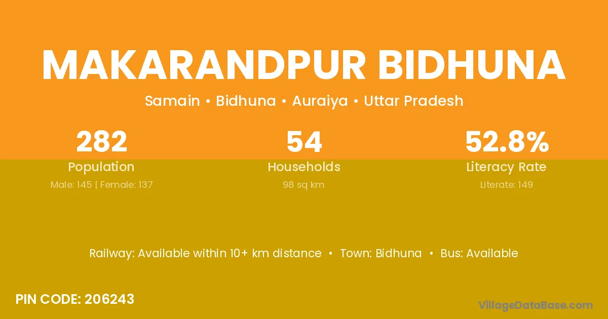 Makarandpur Bidhuna village has a total population of 282 people, of which 145 are males and 137 are females.