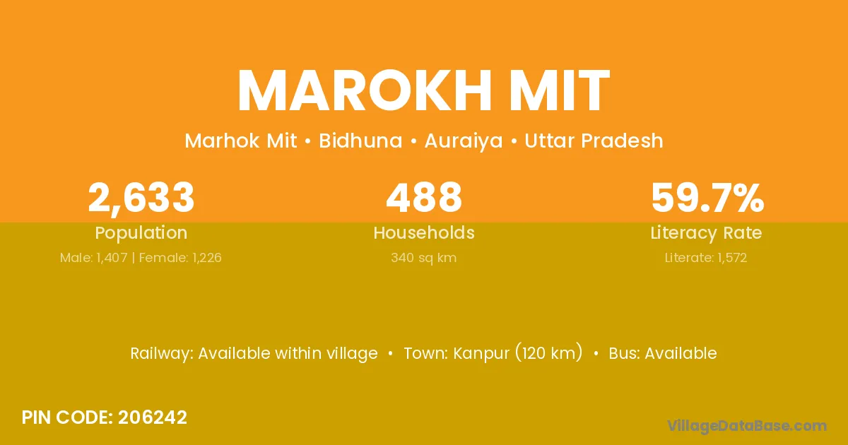 Kanpur (120 km) is the nearest town to Marokh Mit village for major economic activities and is located approximately 120 km away.