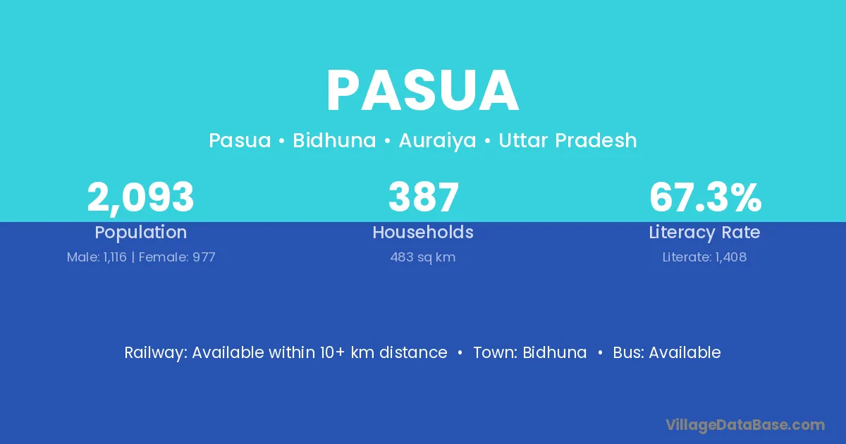 Pasua village has a total population of 2,093 people, of which 1,116 are males and 977 are females.