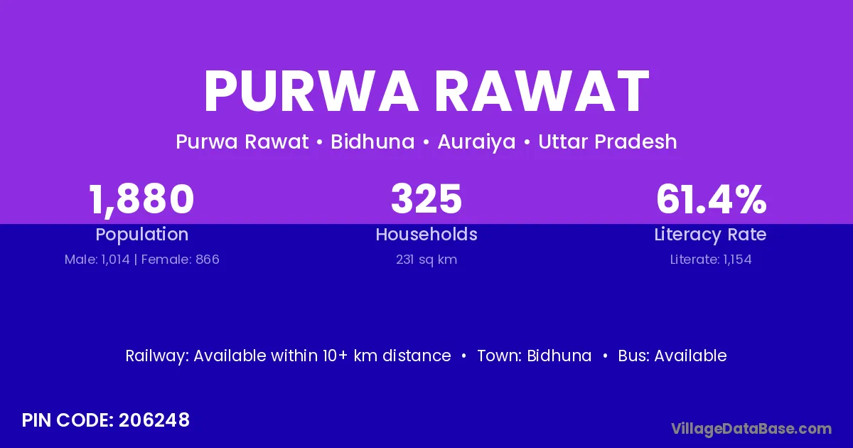 Purwa Rawat village has a total population of 1,880 people, of which 1,014 are males and 866 are females.