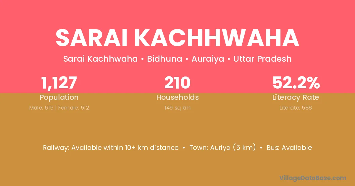Sarai Kachhwaha village has a total population of 1,127 people, of which 615 are males and 512 are females.