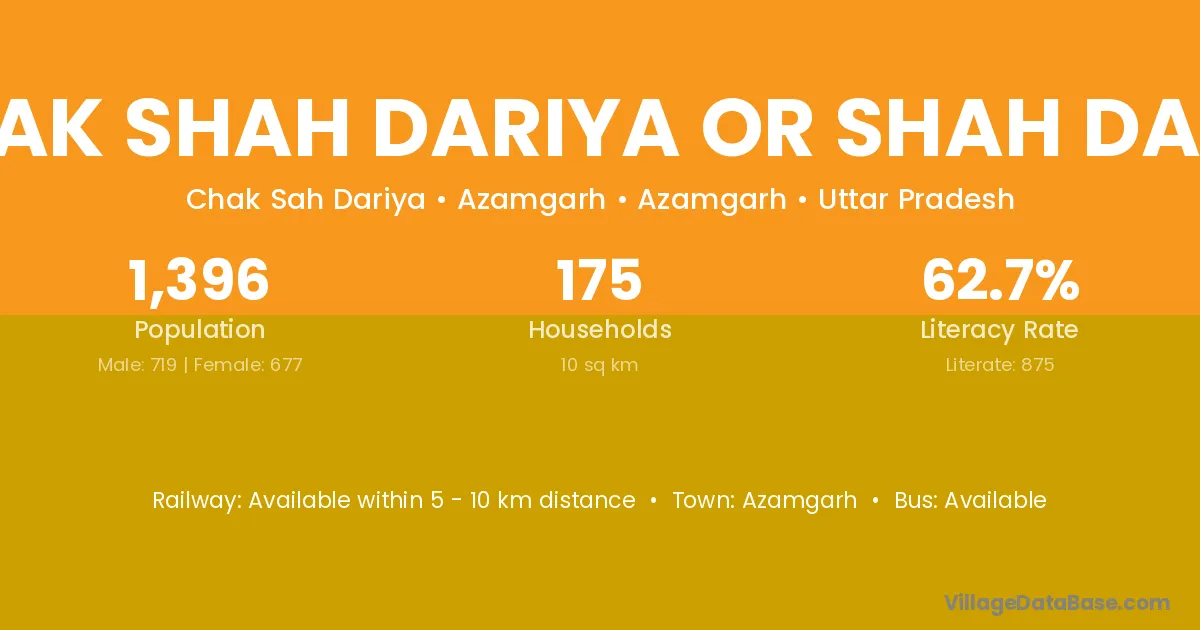 Azamgarh is the nearest town to Chak Shah Dariya Or Shah Dariy village for major economic activities