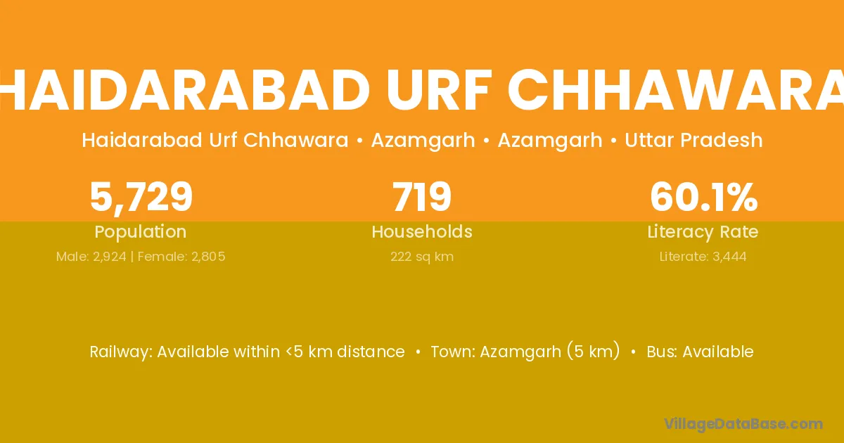 Azamgarh (5 km) is the nearest town to Haidarabad Urf Chhawara village for major economic activities and is located approximately 5 km away.