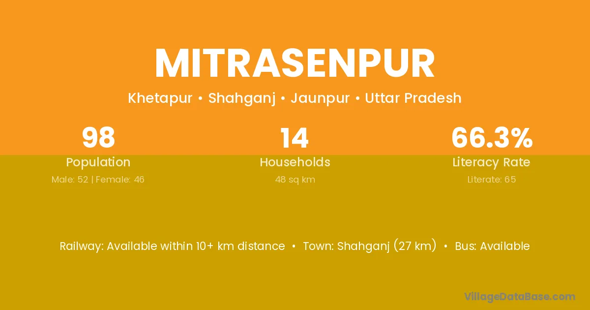 Azamgarh is the nearest town to Mitrasenpur village for major economic activities