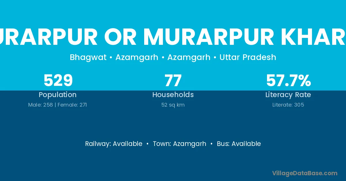 Azamgarh is the nearest town to Murarpur Or Murarpur Kharka village for major economic activities