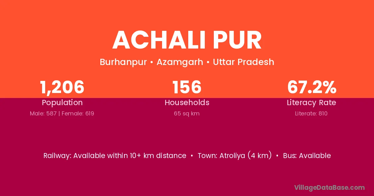 Atroliya (4 km) is the nearest town to Achali Pur village for major economic activities and is located approximately 4 km away.