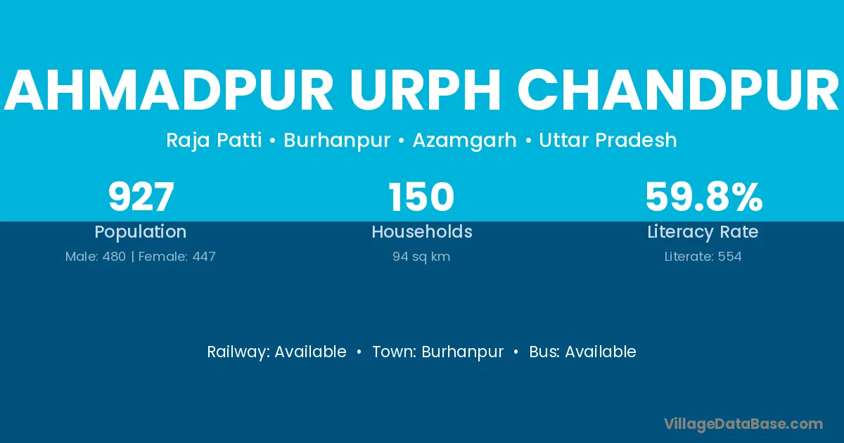 Ahmadpur Urph Chandpur village has a total population of 927 people, of which 480 are males and 447 are females.
