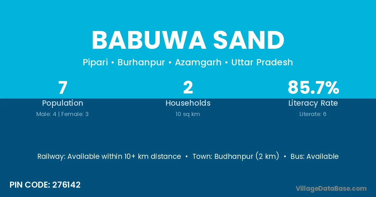 Budhanpur (2 km) is the nearest town to Babuwa Sand village for major economic activities and is located approximately 2 km away.