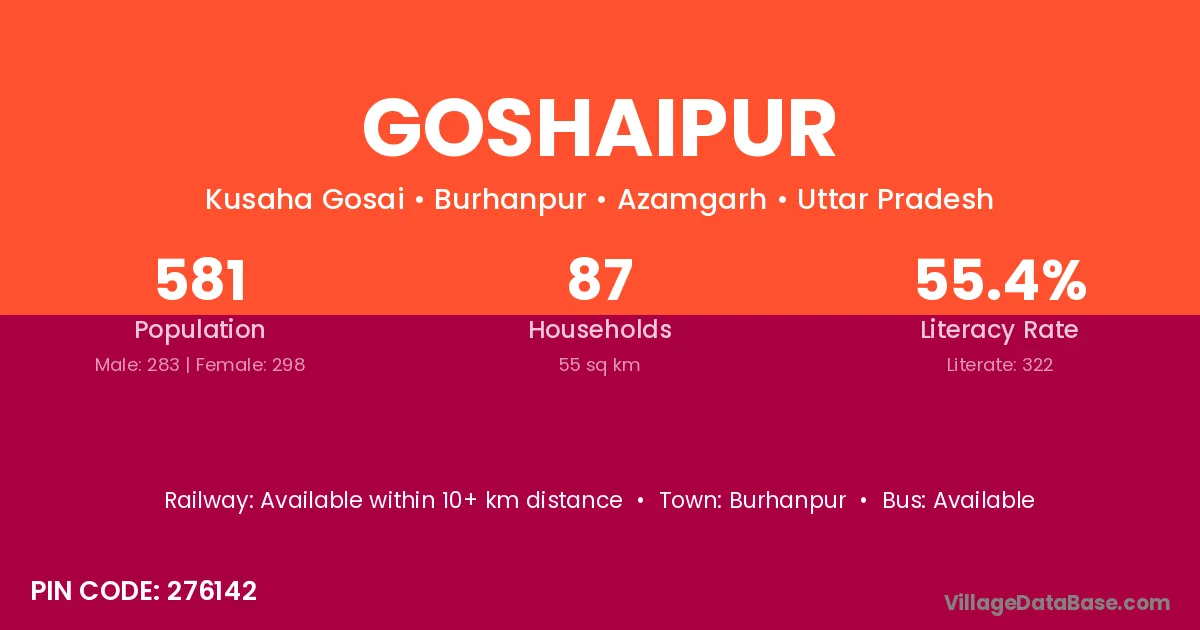 According to Census 2011 information, the village code of Goshaipur village is 276142.