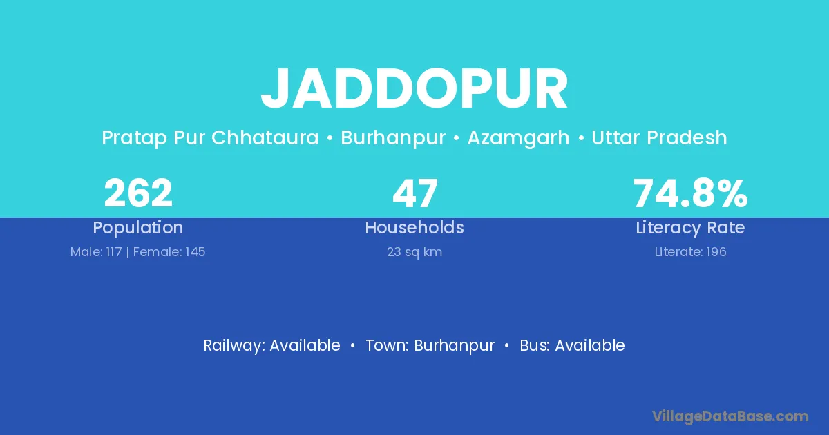 Jaddopur village has a total population of 262 people, of which 117 are males and 145 are females.