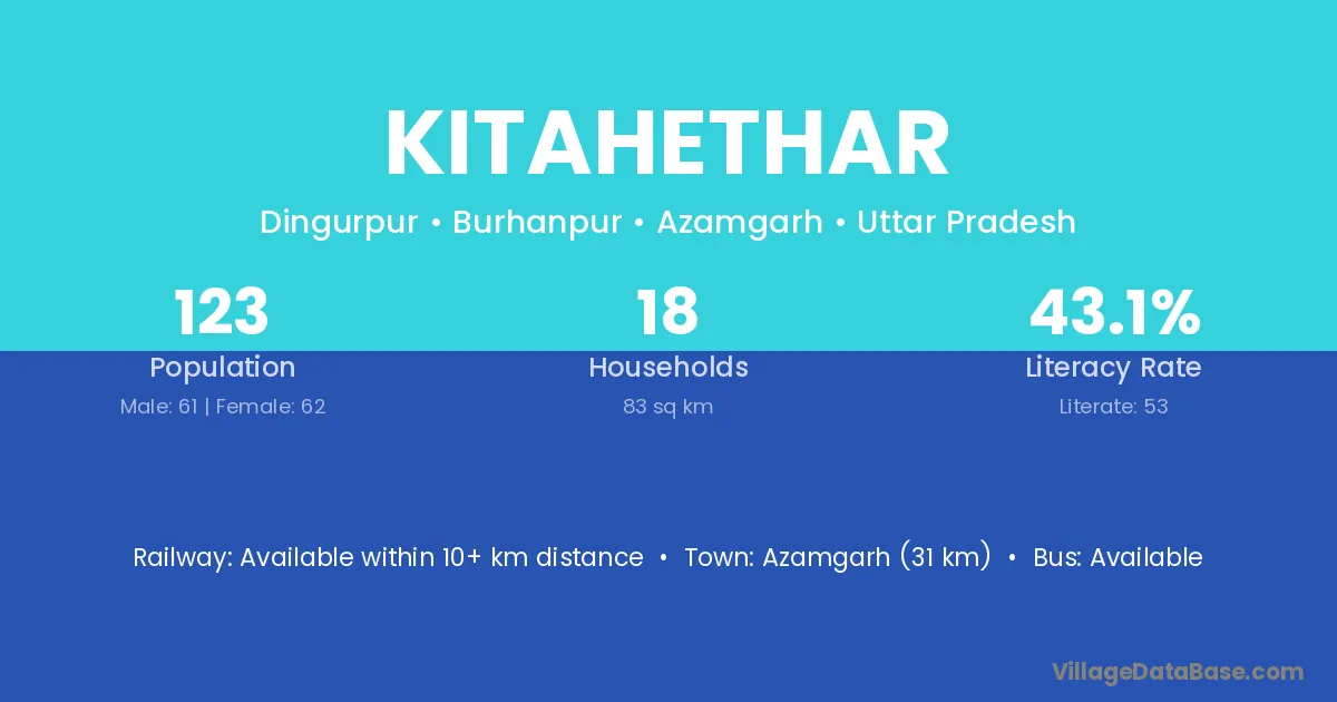 Azamgarh (31 km) is the nearest town to Kitahethar village for major economic activities and is located approximately 31 km away.
