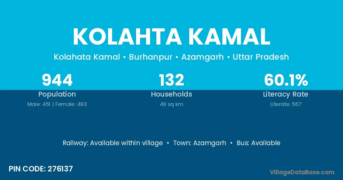 Azamgarh is the nearest town to Kolahta Kamal village for major economic activities