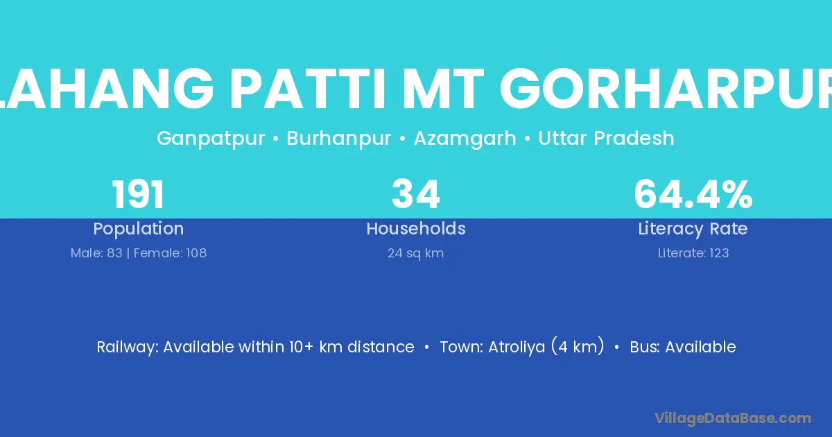 Lahang Patti Mt Gorharpur village has a total population of 191 people, of which 83 are males and 108 are females.