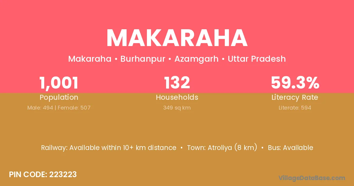 Atroliya (8 km) is the nearest town to Makaraha village for major economic activities and is located approximately 8 km away.