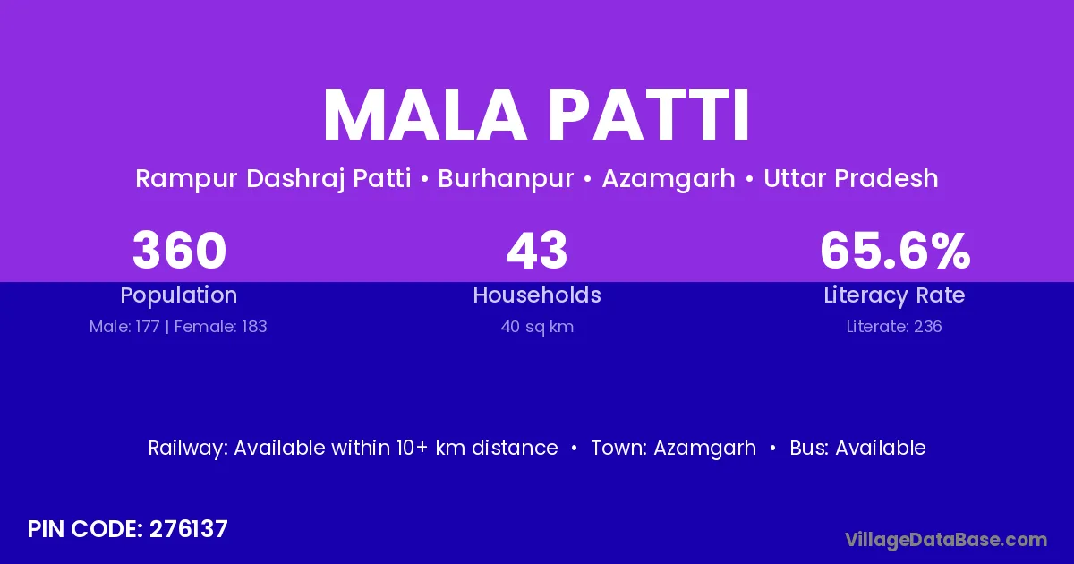 Azamgarh is the nearest town to Mala Patti village for major economic activities