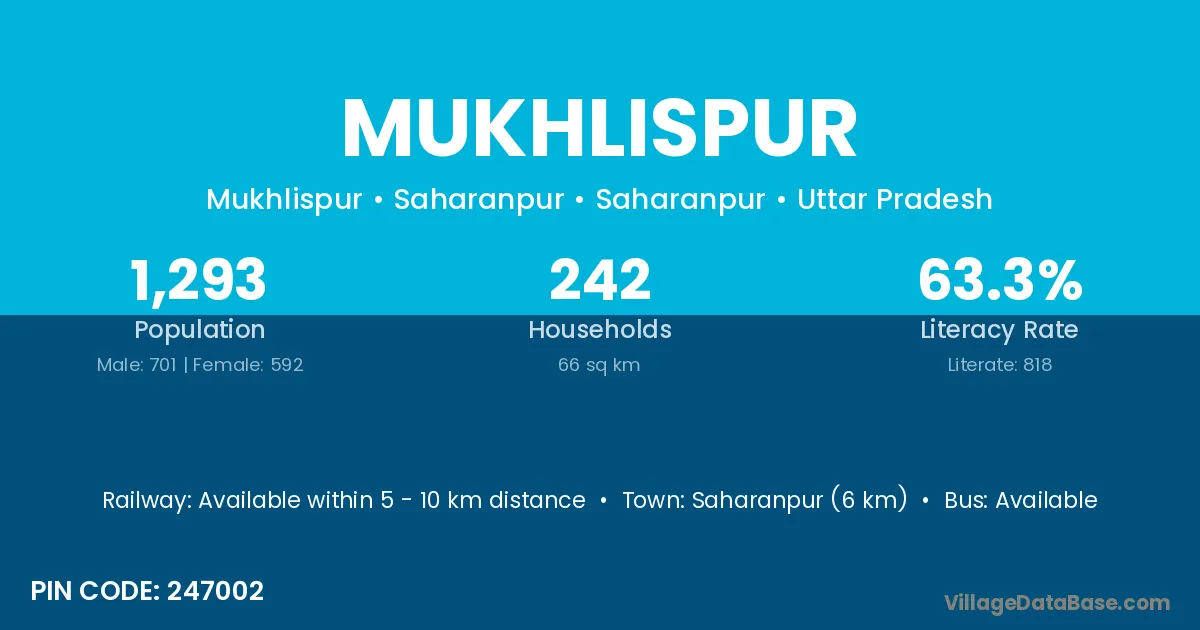Burhanpur is the nearest town to Mukhlispur village for major economic activities