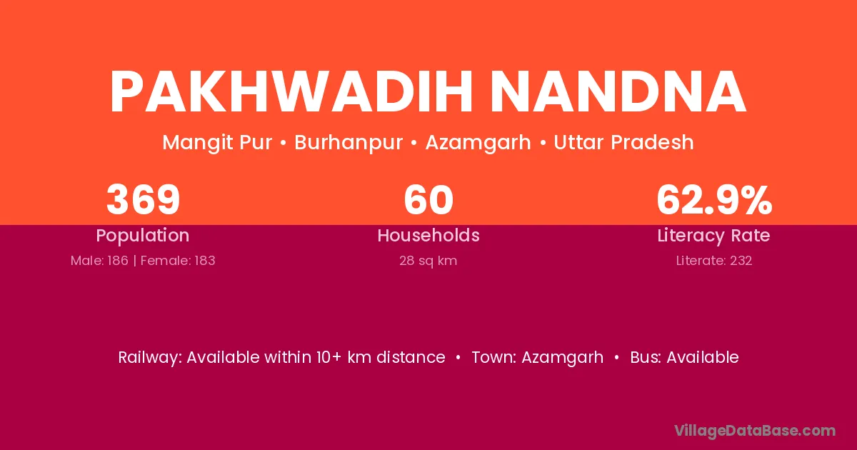 Pakhwadih Nandna village has a total population of 369 people, of which 186 are males and 183 are females.