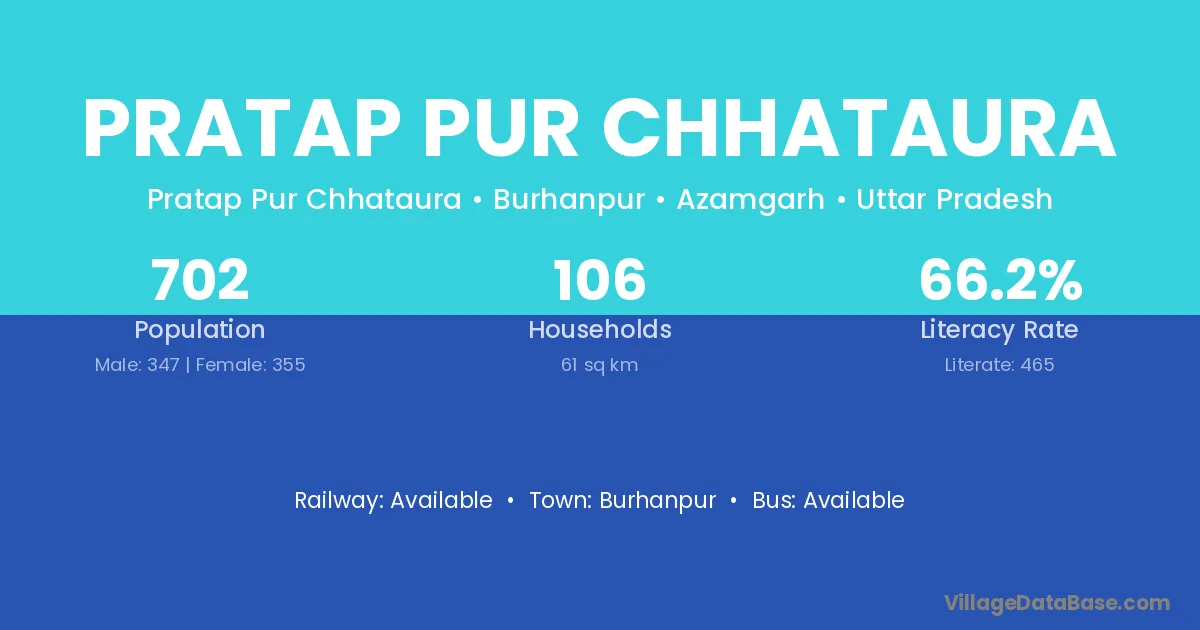 Pratap Pur Chhataura village has a total population of 702 people, of which 347 are males and 355 are females.